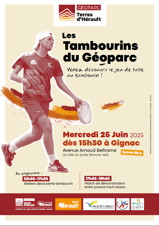 « Géoparc Mondial UNESCO », portée par le Département de l’Hérault, que la Fédération Française de Jeu de Balle au Tambourin organise les « Tambourins du Géoparc »,
