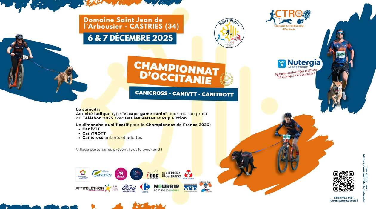 Le Canisport et Running d’Occitanie organise, sous l’égide de la Fédération Française des Sports et Loisirs Canins, avec le concours de la Ville de Castries, de Montpellier Méditerranée Métropole, du Département de l’Hérault et le soutien logistique d’Hérault Sport, le Championnat d’Occitanie Canicross, CaniVTT et CaniTROTT.