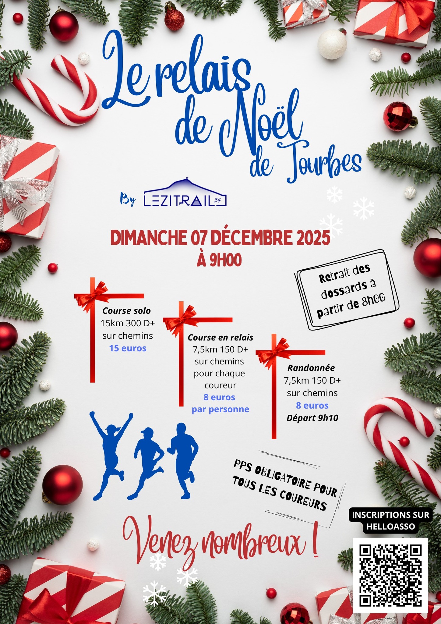 L’association Lézitrail 34 propose, avec le concours de la commune de Tourbes, du Département de l’Hérault et le soutien logistique d’Hérault Sport, son Relais de Noël.