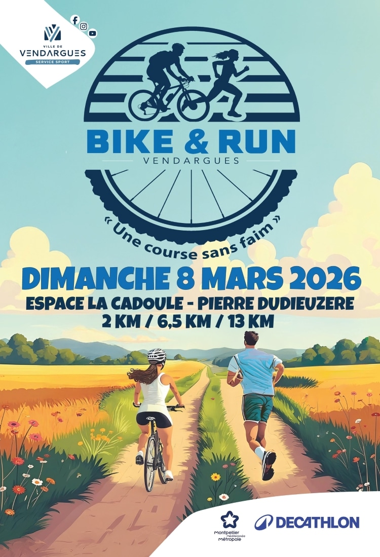 Le Service des sports de la Ville de Vendargues organise, avec le concours, de la Métropole Montpellier Méditerranée, du Département de l’Hérault et le soutien logistique d’Hérault Sport, son Bike & Run le dimanche 8 mars.