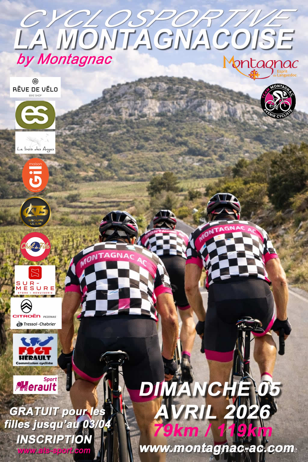 Le club Team Montagnac Avenir Cycliste, organise, avec le concours de la FSGT 34, de la Ville de Montagnac, du Département de l’Hérault et le soutien logistique d’Hérault Sport, la Montagnacoise.