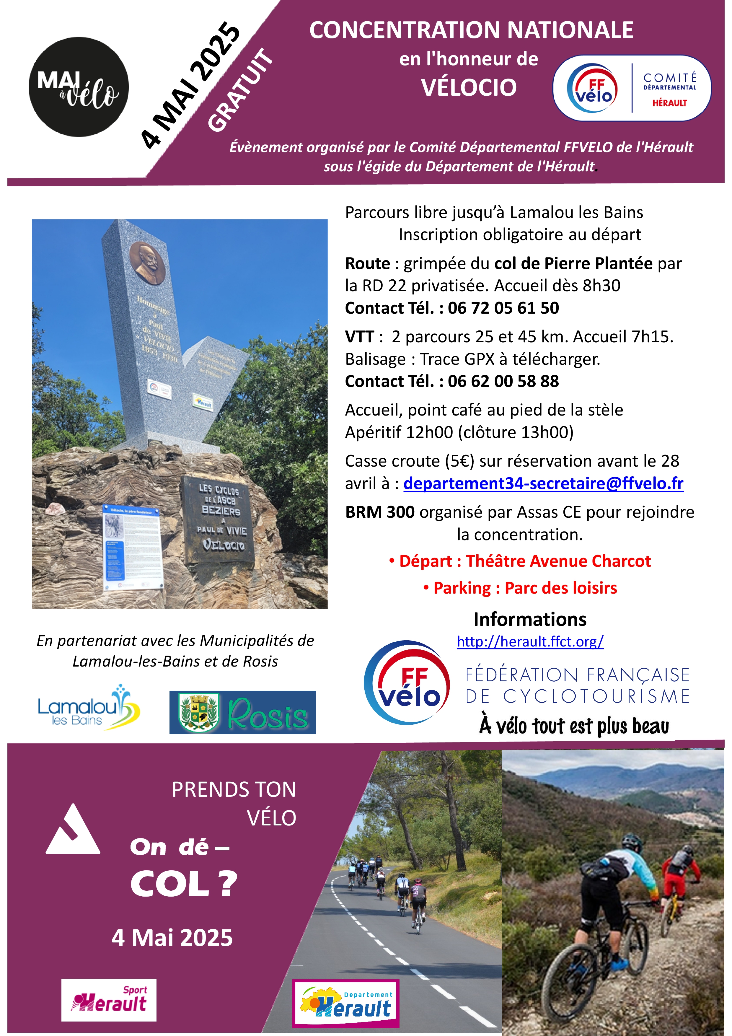34240 LAMALOU-LES-BAINS - departement34-secretaire@ffvelo.fr